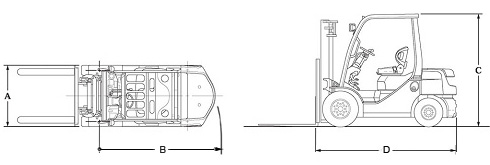 | 至貨叉垂直面的長度 | D | 毫米 | 2240 | 2285 | 2310 | 2550 | 2620 | 2775 | 2845 |