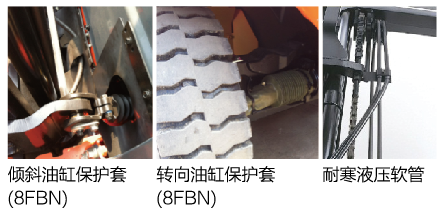 液壓系統(tǒng)的油泵、油缸類和閥類(轉(zhuǎn)向-制動(dòng))都采用低溫包裝,同時(shí)液壓軟管采用耐低溫的橡膠材質(zhì),有效防止低溫導(dǎo)致的軟管劣化和液壓功能異常 |