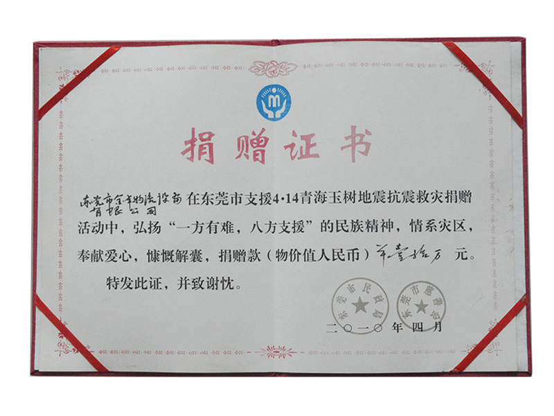 捐贈(zèng)證書(shū)